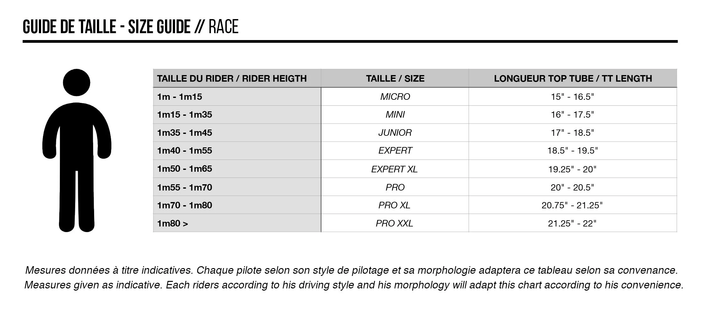 Taille PRO XXL. Taille du pilote : Plus de 1,80m