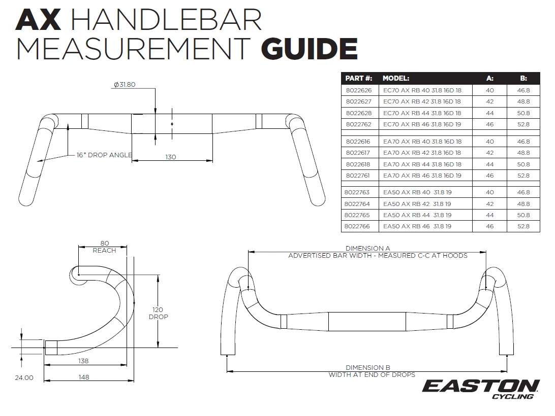 La nouvelle ligne de cintre EASTON AX répond aux besoins de l’aventure, plus légère et plus rigide. Un shape moins radical que d’autres et un drop flare de 16°.