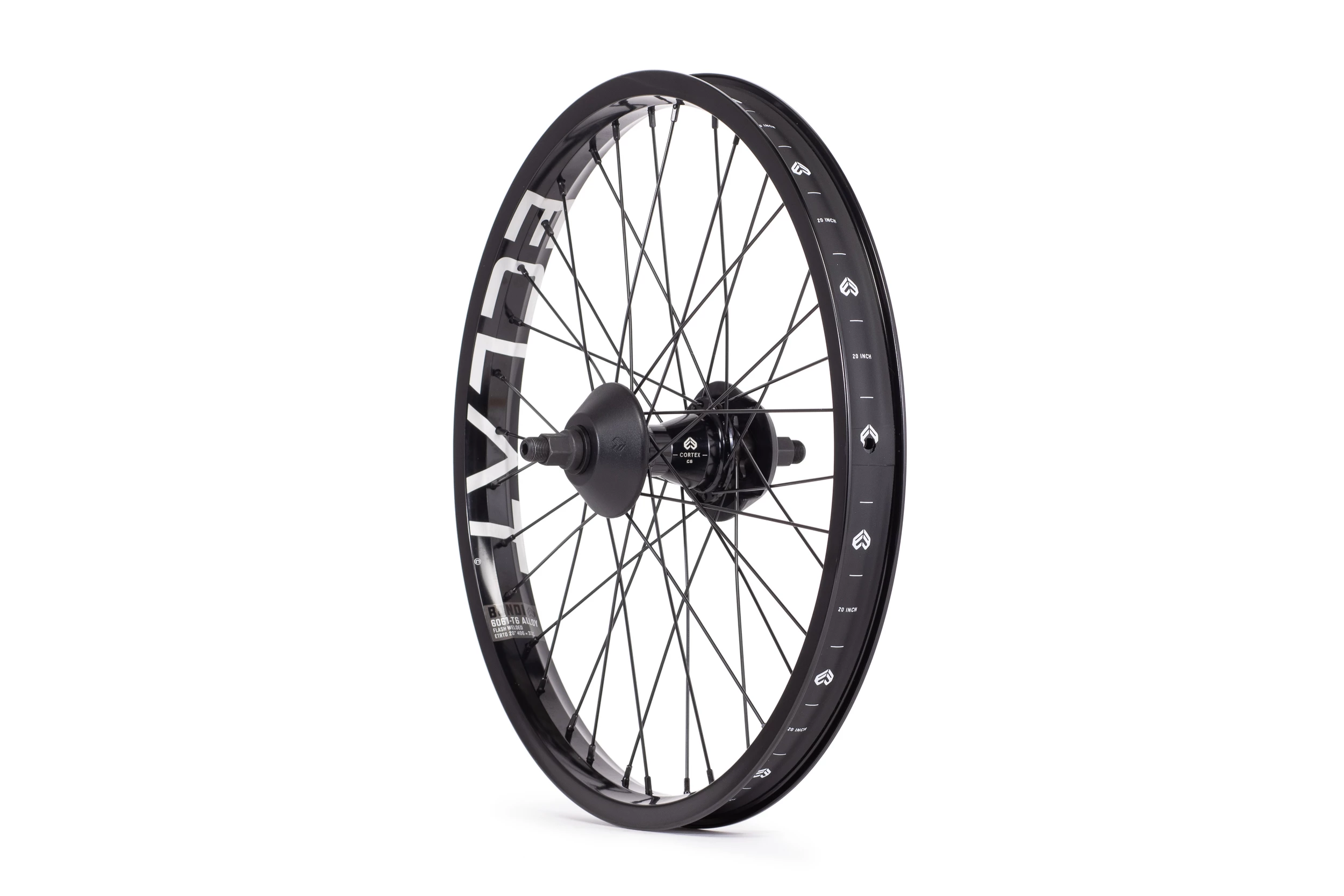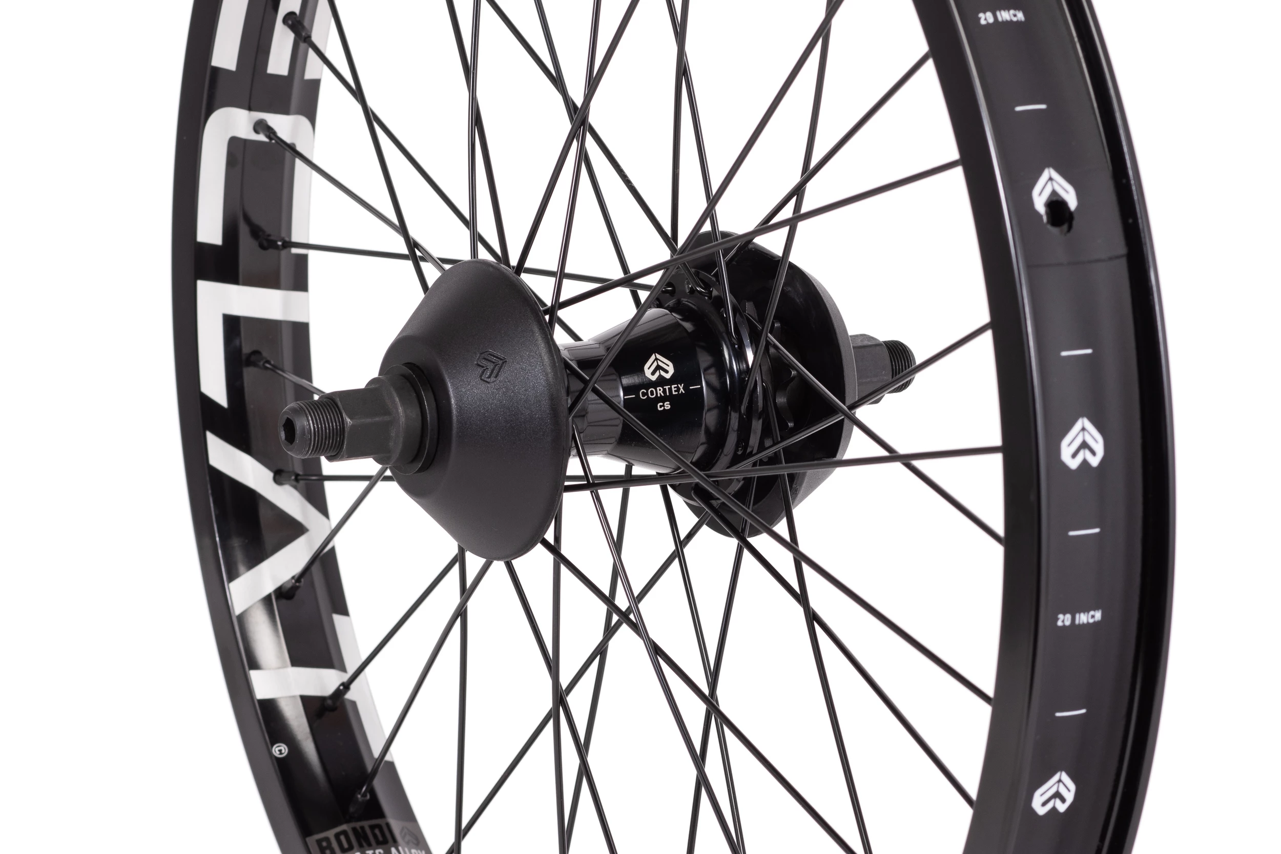 Roue à cassette arrière complète née pour le street La roue à cassette Bondi de 20 « d’Éclat est une roue complète très solide. Elle est livrée avec des roulements entièrement scellés et des protège-moyeux des deux côtés. Construction légère faite d’une jante en alliage 6066-T6 et de rayons en acier inoxydable